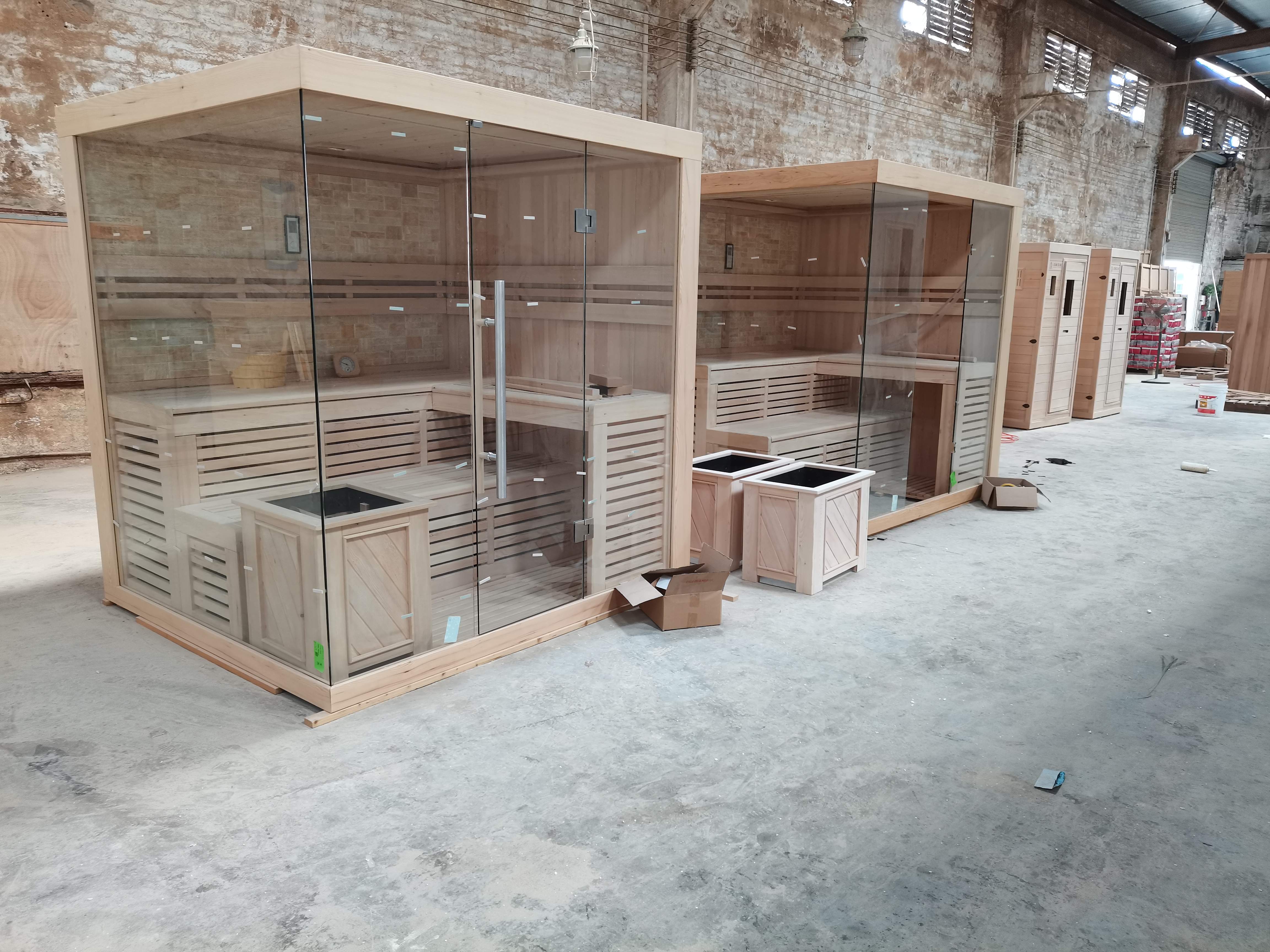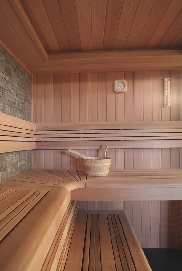 这款传统湿蒸桑拿房共有两种标准尺寸可选,使用加拿大进口的铁衫木制造而成,可以容纳多人。配有桑拿炉、桑拿石、木桶、木勺等桑拿配件,内部还采用文化石作装饰,彰显时尚优雅气息。这款桑拿房除了可以放置在家中与家人或朋友一起享受桑拿时刻,也可以用作商业用途,无论是用于度假酒店、大型健身房还是spa水疗馆,它都可以成为吸引客户的一大卖点,有助于业务的增长。